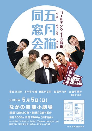 兼好・百栄・今輔 五月猫同窓会 19/5/5(日) なかの芸能小劇場 シェア ツイート 上演情報 ジャンル 落語/演芸 料金 【全席自由】前売-3,000円 当日-3,500円 キャスト&スタッフ 出演 三遊亭兼好 春風亭百栄 古今亭今輔 寒空はだか 笑福亭たま お問い合わせ ノラや 公式サイト シェア ツイート