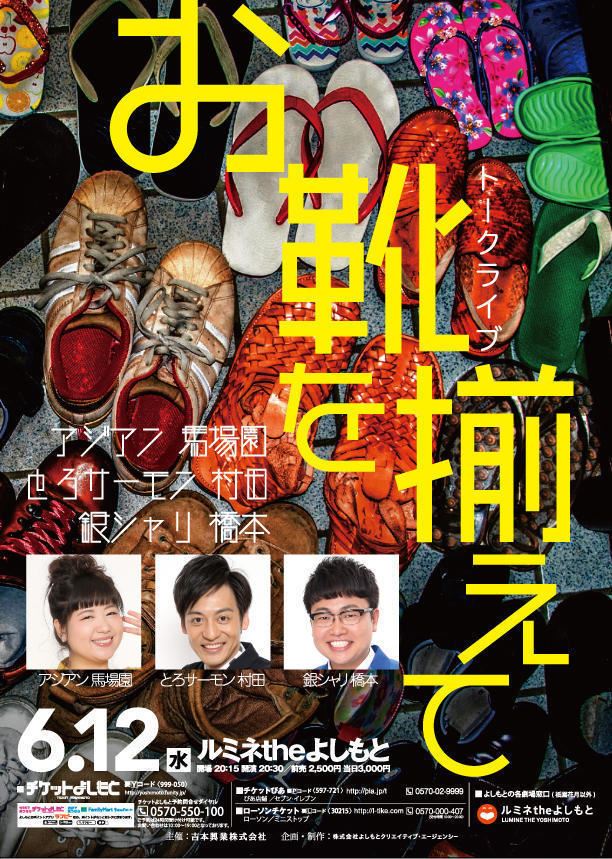 『お靴を揃えて』 ルミネtheよしもと ライブスペシャル6月 19/6/12(水) ルミネtheよしもと シェア ツイート 上演情報 ジャンル お笑い 22:00終演予定 料金 前売-2,500円当日-3,000円 全席指定4歳以下かつ身長110cm以下は膝上無料。車椅子での来場はチケット購入前問合せ先まで要連絡。 表示できるチケット情報はありません詳しくはこちら キャスト&スタッフ 出演 銀シャリ・橋本 [出演]アジアン・馬場園 / とろサーモン・村田 / 銀シャリ・橋本 お問い合わせ チケットよしもと予約問合せダイヤル 10:00~19:00 公式サイト シェア ツイート