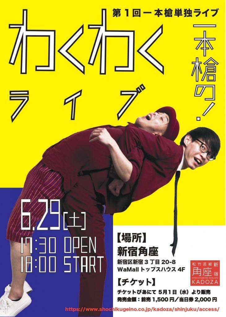 第1回 一本槍単独ライブ 一本槍の!わくわくライブ 19/6/29(土) 松竹芸能 新宿角座 シェア ツイート 2018年開催の若手ピラミッドライブ『下剋上バトル 松』3回優勝し、「好きなライブをできる権利」を獲得した一本槍が初めての単独ライブを開催! 上演情報 ジャンル お笑い 19:30終演予定 料金 前売-1,500円当日-2,000円 全席自由未就学児童は入場不可 表示できるチケット情報はありません詳しくはこちら キャスト&スタッフ 出演 一本槍 [出演]一本槍 お問い合わせ 松竹芸能 新宿角座 公式サイト シェア ツイート