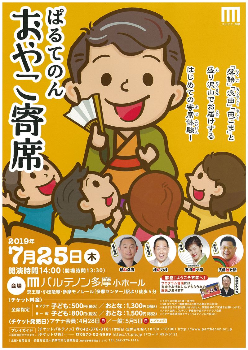 小文治・かい枝・奈々福 ぱるてのん おやこ寄席 19/7/25(木) パルテノン多摩 小ホール シェア ツイート 上演情報 ジャンル 落語/演芸 料金 【全席指定】一般-1,500円 子ども-800円 子ども:4歳~高校生/公演当日要学生証※3歳以下は保護者膝上に限り無料。席が必要な場合はチケット必要。 表示できるチケット情報はありません詳しくはこちら キャスト&スタッフ 出演 桂小文治 桂かい枝 玉川奈々福 三増紋之助 お問い合わせ チケットパルテノン シェア ツイート