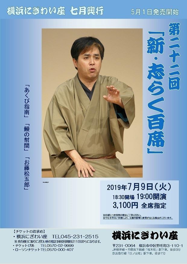 立川志らく 第二十二回「新・志らく百席」 19/7/9(火) 横浜にぎわい座 芸能ホール シェア ツイート 上演情報 ジャンル 落語/演芸 【演目】 立川志らく「あくび指南」「鰻の幇間」「お藤松五郎」 料金 【全席指定】3,100円 キャスト&スタッフ 出演 立川志らく お問い合わせ 横浜にぎわい座 公式サイト シェア ツイート