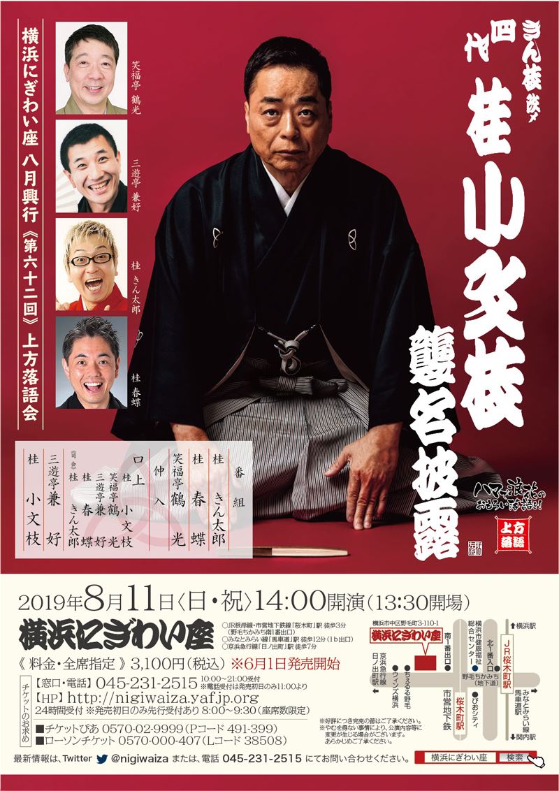 横浜にぎわい座 第六十二回 上方落語会 19/8/11(日) 横浜にぎわい座 芸能ホール シェア ツイート 上演情報 ジャンル 落語/演芸 【演目】 桂きん太郎 桂春蝶 笑福亭鶴光 ≪お仲入り≫ 口上 三遊亭兼好 桂きん枝改メ四代目桂小文枝 料金 【全席指定】3,100円 キャスト&スタッフ 出演 桂小文枝 三遊亭兼好 笑福亭鶴光 桂春蝶 桂きん太郎 お問い合わせ 横浜にぎわい座 公式サイト シェア ツイート
