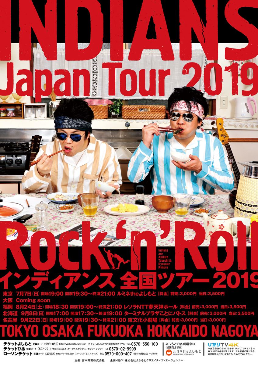 インディアンス単独ライブツアー『Rock 'n' roll』in東京 19/7/7(日) ルミネtheよしもと シェア ツイート 上演情報 ジャンル お笑い 21:00終演予定 この公演は会場内にテレビカメラ設置、客席を含む会場内の映像・写真が公開されることがあります 料金 前売-3,000円当日-3,500円 全席指定4歳以下(身長110cm以下)はひざ上のみ無料車椅子の方は購入前にチケットよしもと予約問合せダイヤルまで要連絡 キャスト&スタッフ 出演 インディアンス [出演]インディアンス お問い合わせ チケットよしもと予約問合せダイヤル 10:00~19:00 公式サイト シェア ツイート