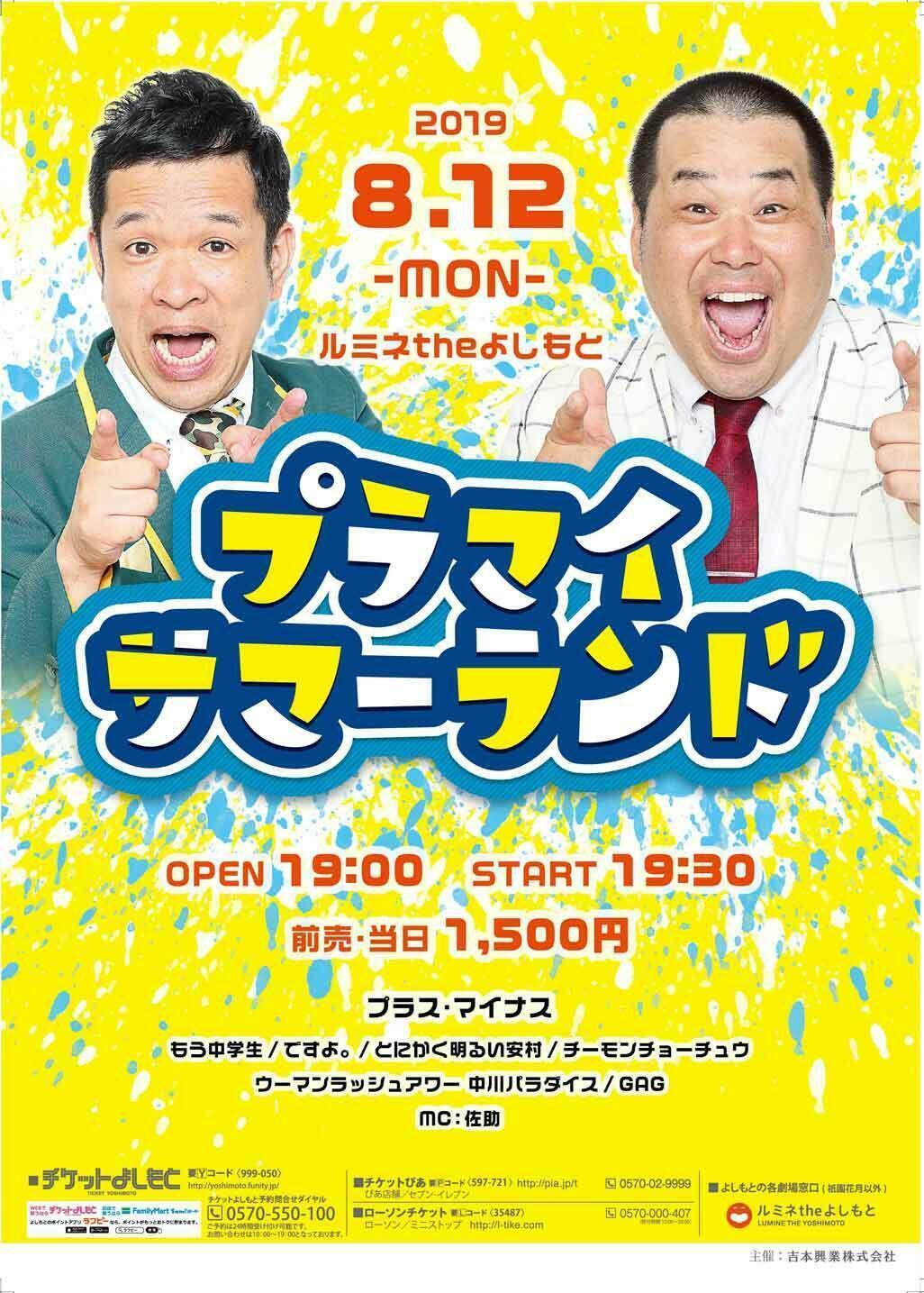 『プラマイサマーランド』ルミネtheよしもと ライブスペシャル/ワンコインライブ 8月 19/8/12(月) ルミネtheよしもと シェア ツイート 上演情報 ジャンル お笑い 21:00終演予定 料金 一般-1,500円 全席指定4歳以下(身長110cm以下)はひざ上のみ無料車椅子の方は購入前にチケットよしもと予約問合せダイヤルまで要問合せ 表示できるチケット情報はありません詳しくはこちら キャスト&スタッフ 出演 プラス・マイナス もう中学生 ですよ。 [出演]プラス・マイナス / もう中学生 / ですよ。 / 他 お問い合わせ チケットよしもと予約問合せダイヤル 10:00~19:00 公式サイト シェア ツイート