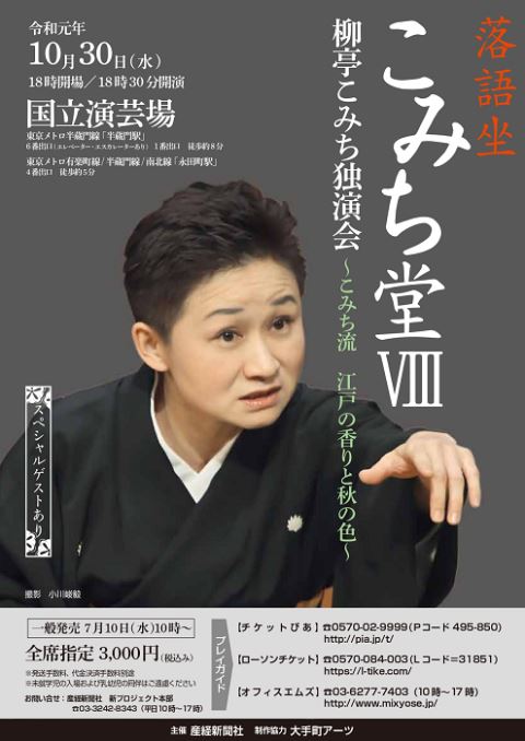 落語坐 こみち堂VIII -柳亭こみち独演会- 19/10/30(水) 国立演芸場 シェア ツイート 上演情報 ジャンル 落語/演芸 料金 【全席指定】3,000円 ※未就学児童は入場不可。 表示できるチケット情報はありません詳しくはこちら キャスト&スタッフ 出演 柳亭こみち お問い合わせ 産経新聞社 新プロジェクト本部 シェア ツイート