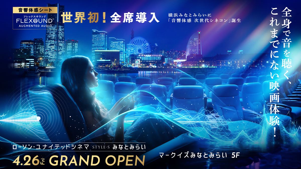 フィンランドが生んだ没入型音響体感システム【FLEXOUND Augmented Audio】を世界初! 全12スクリーン、全座席に導入! 他のサウンドシステムのように入場料金がプラスされることはなく、通常の映画鑑賞料金でご利用いただけます。